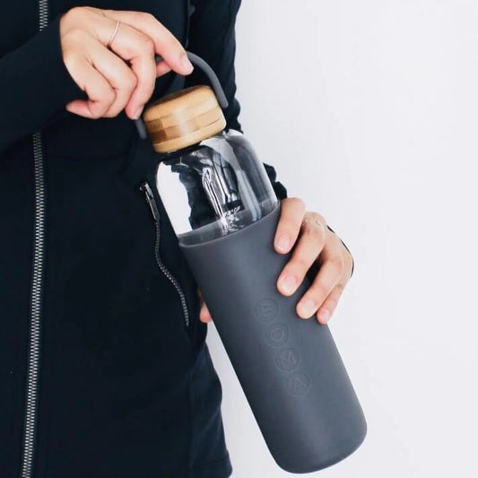 Glass Water Bottle with Silicone Sleeve, Bpa-Free, Gray, 25Oz