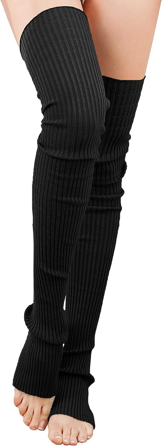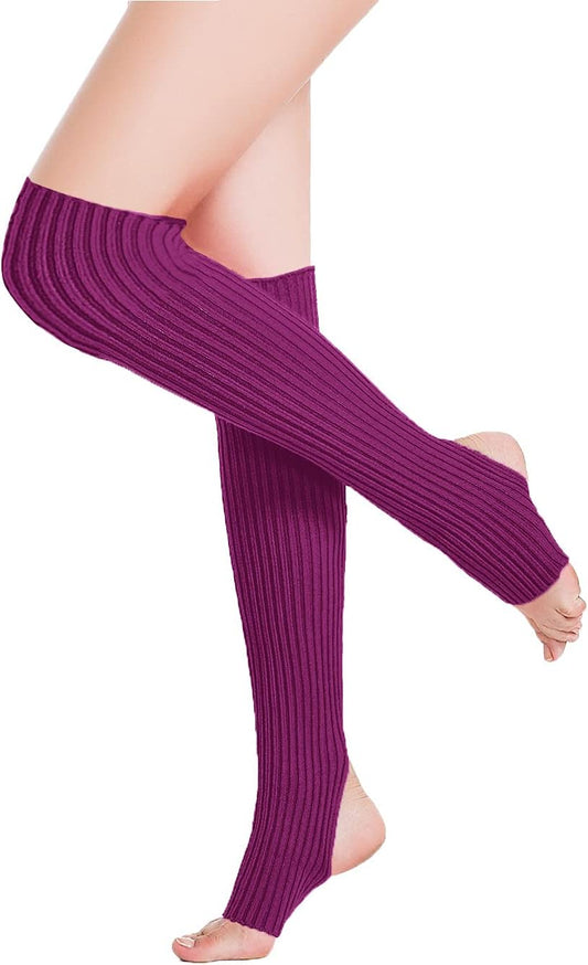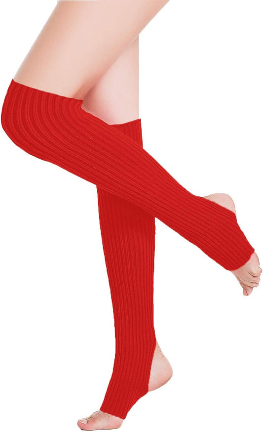 Calentadores de piernas de neón acanalados hasta el muslo para mujeres y niñas, largos, de los añ...